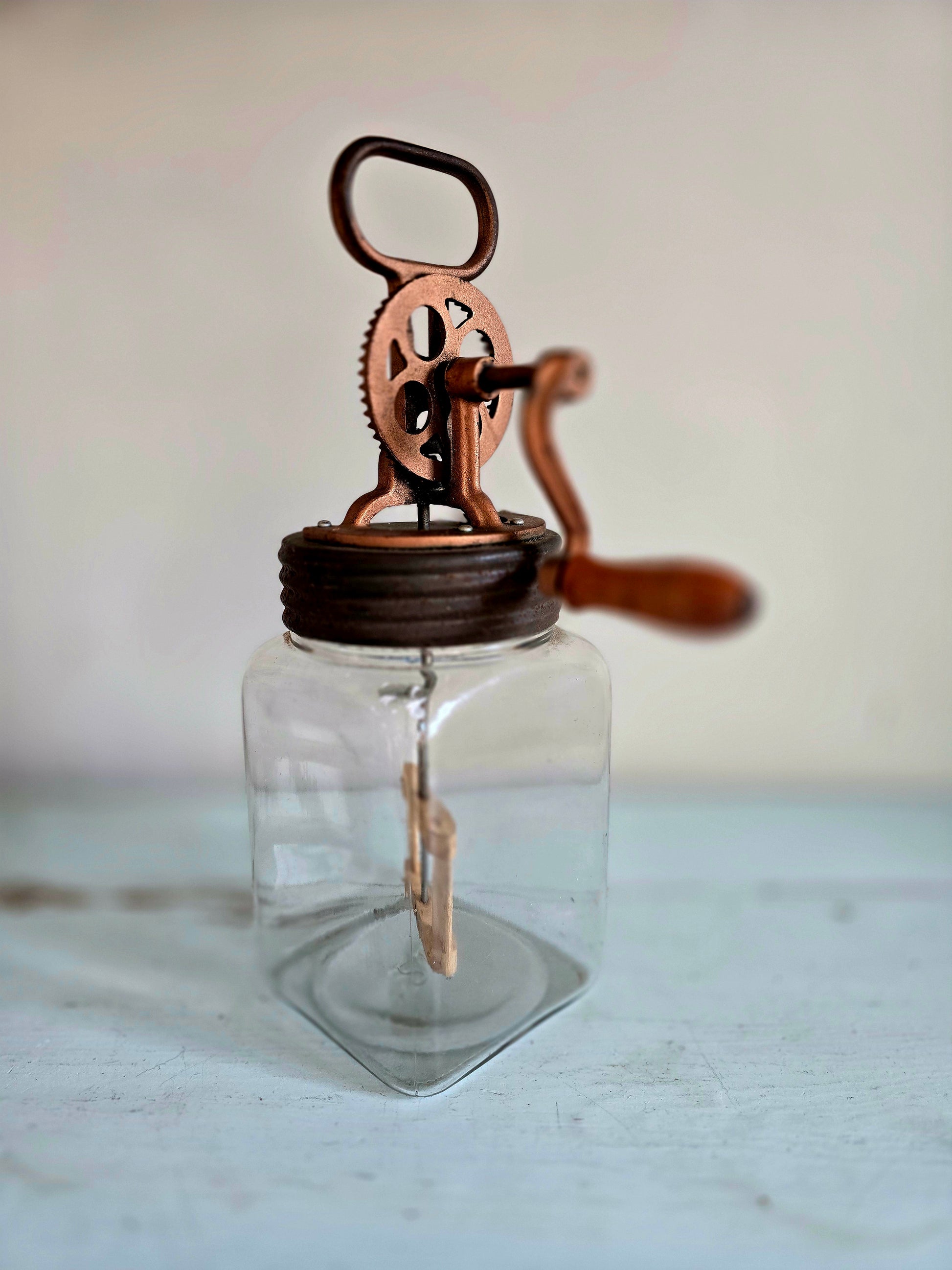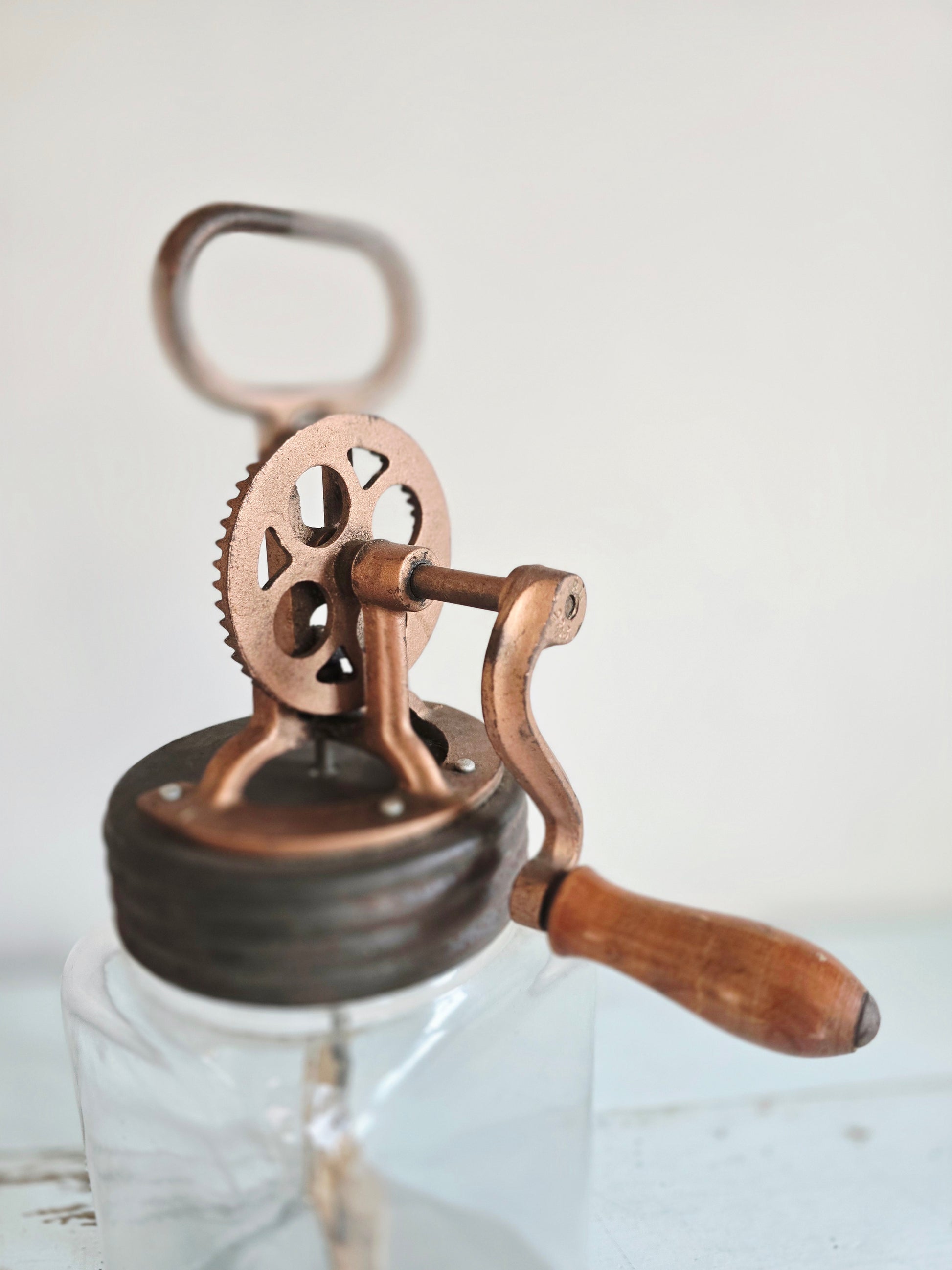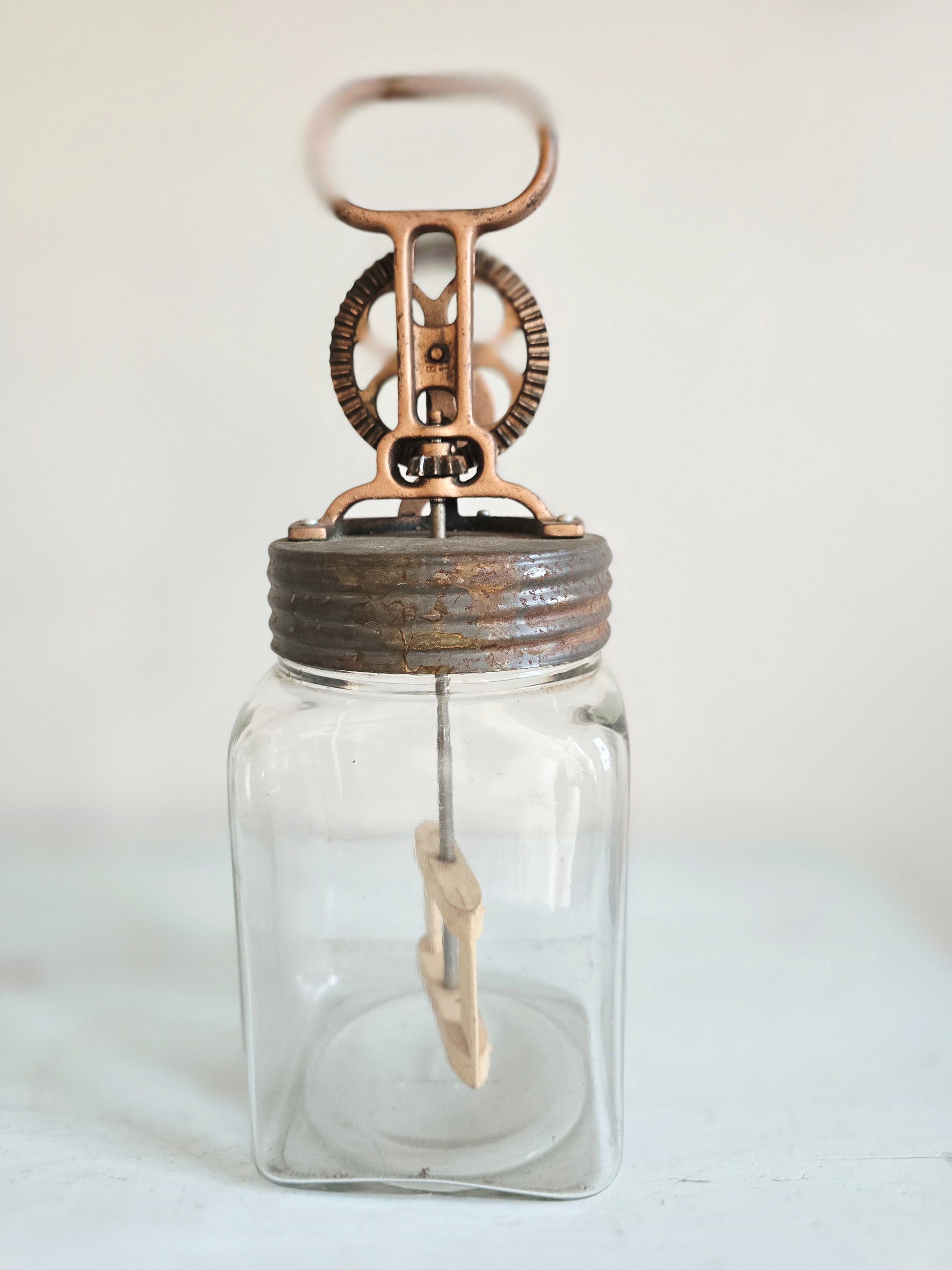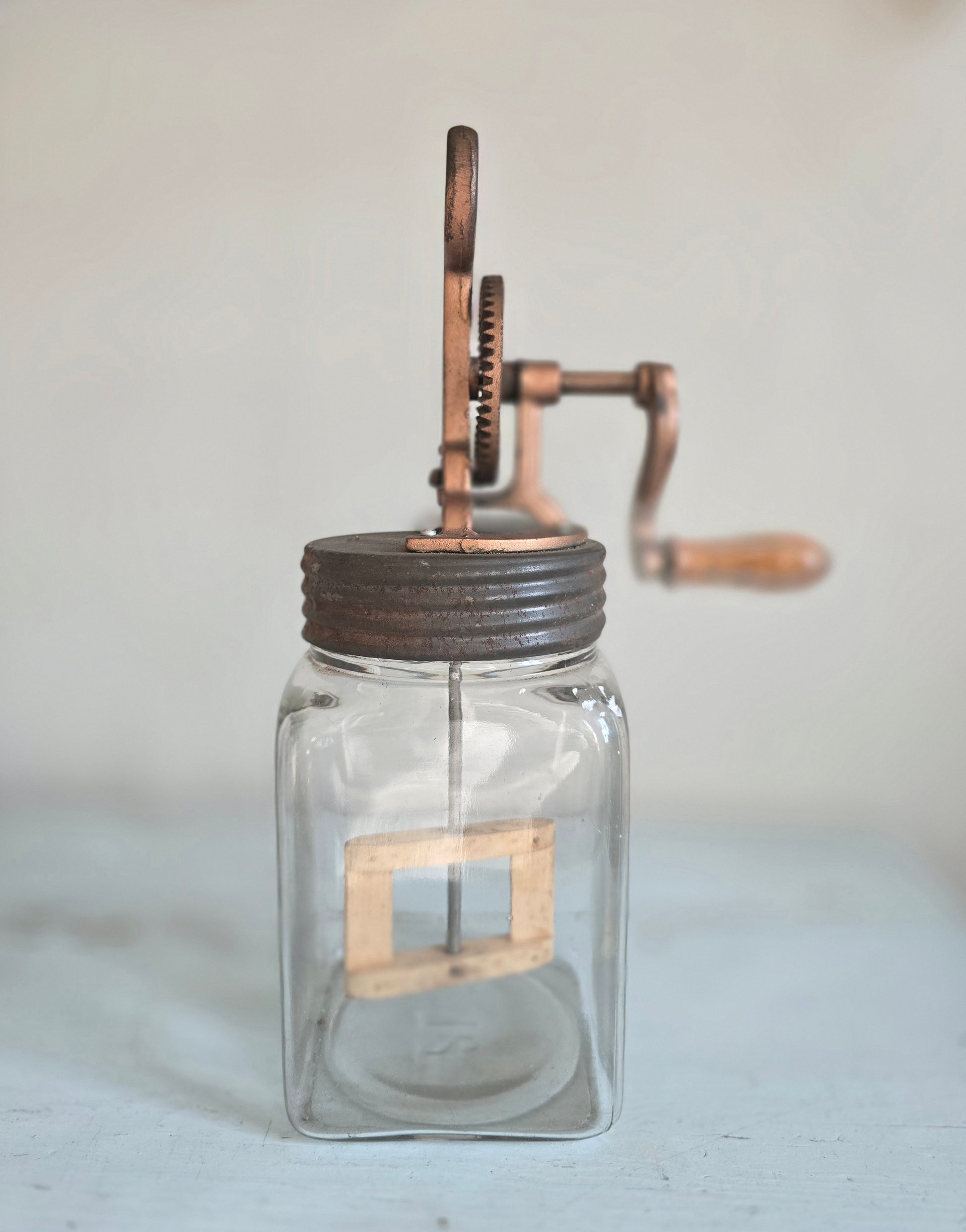 Ancienne baratte à beurre, toujours fonctionelle mais fait une très belle déco dans votre cuisine.