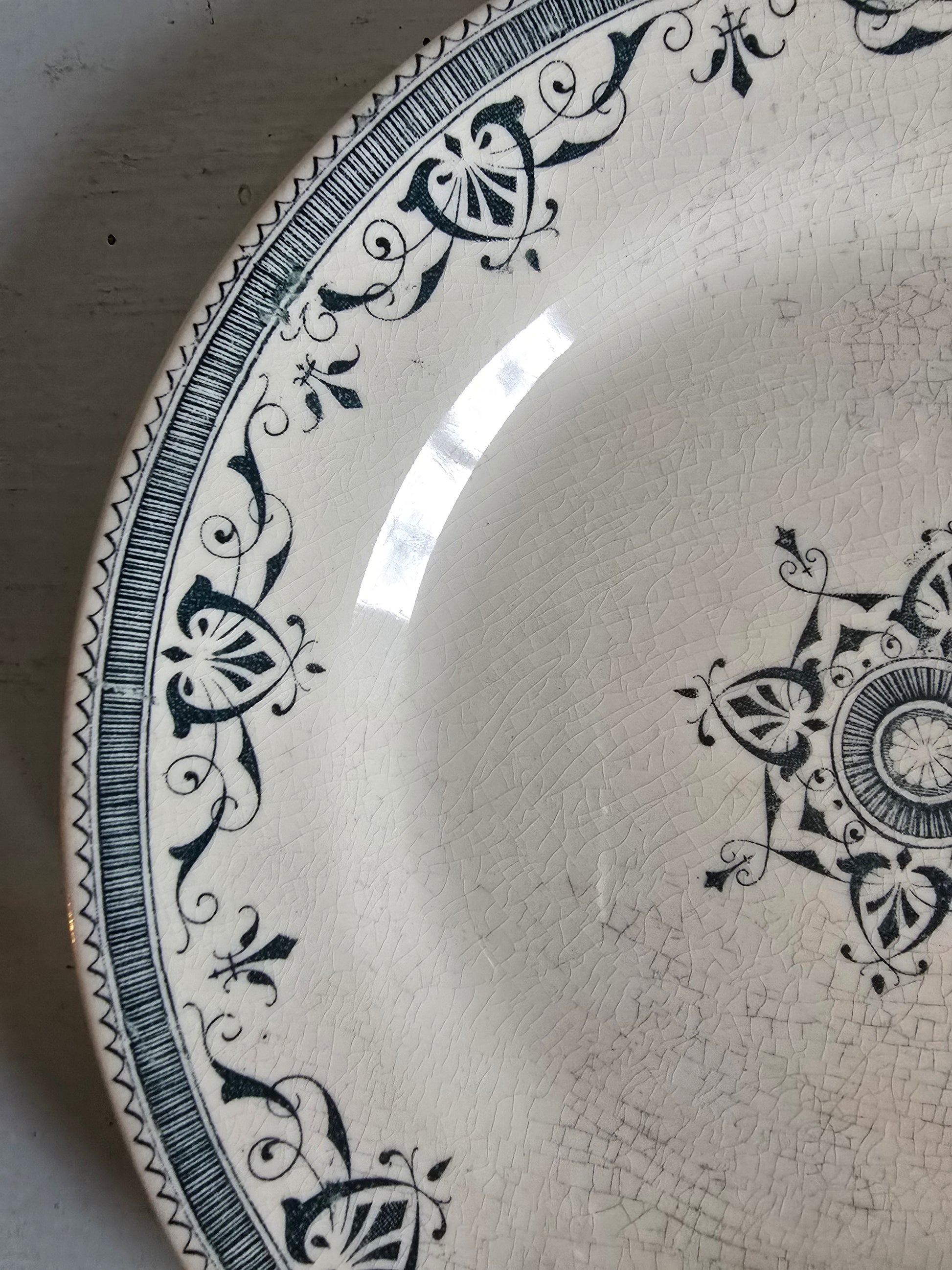 Belle assiette plate, terre de fer, modèle Amiral de Creil & Montereau.