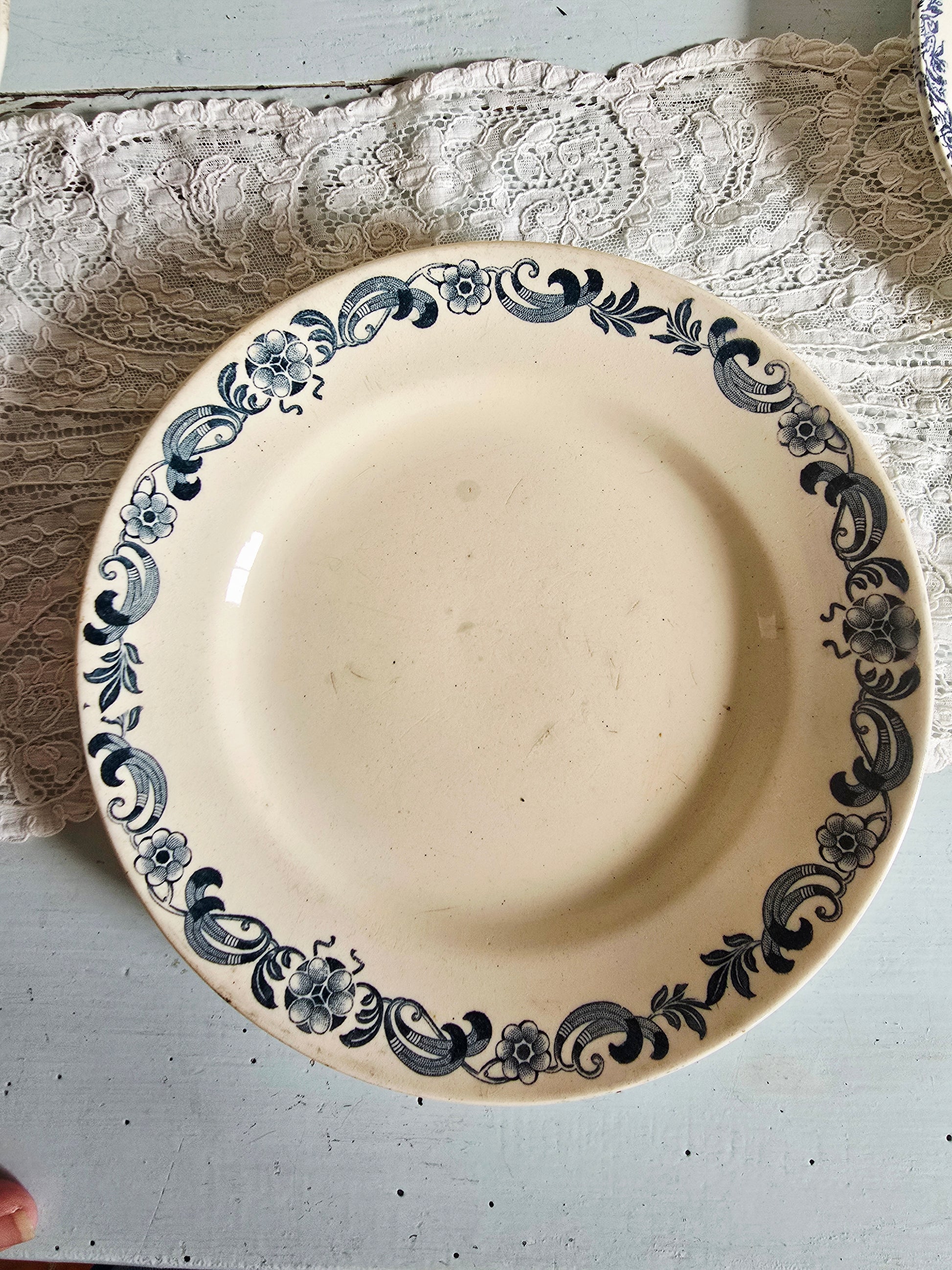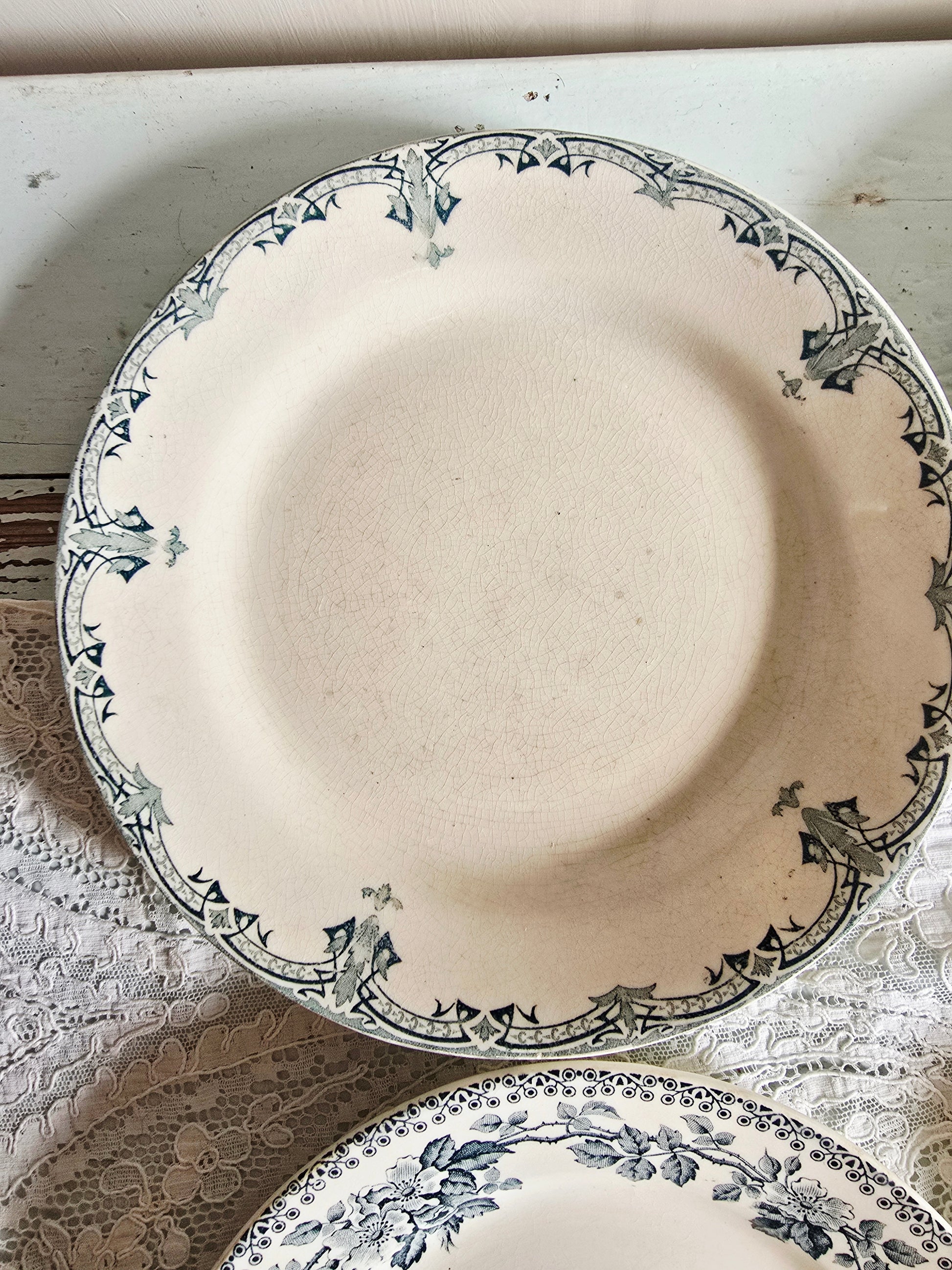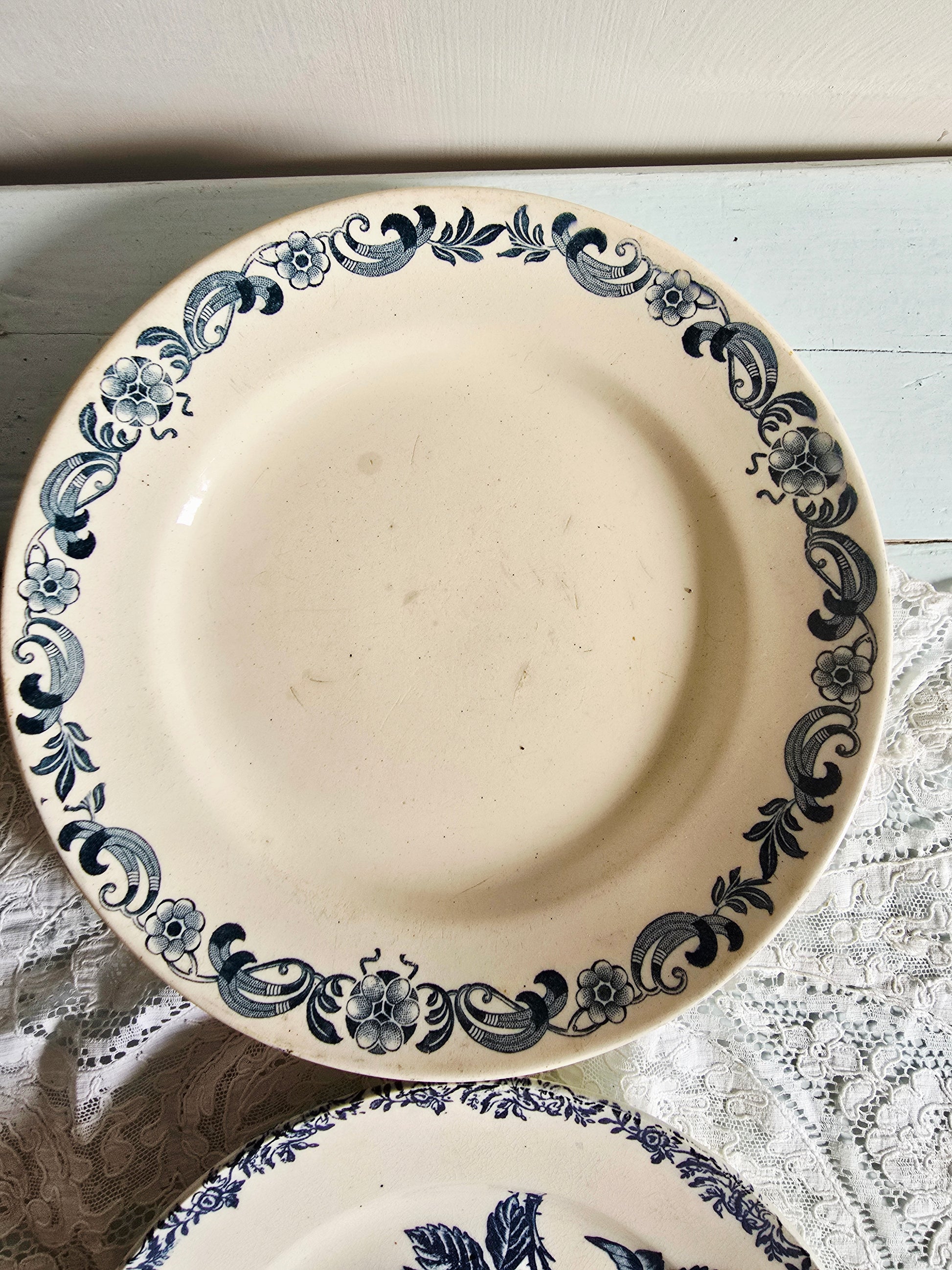 Ces assiettes sont anciennes et présentent des traces de leur vécu : taches, craquelage, 1 assiette a un petit éclat