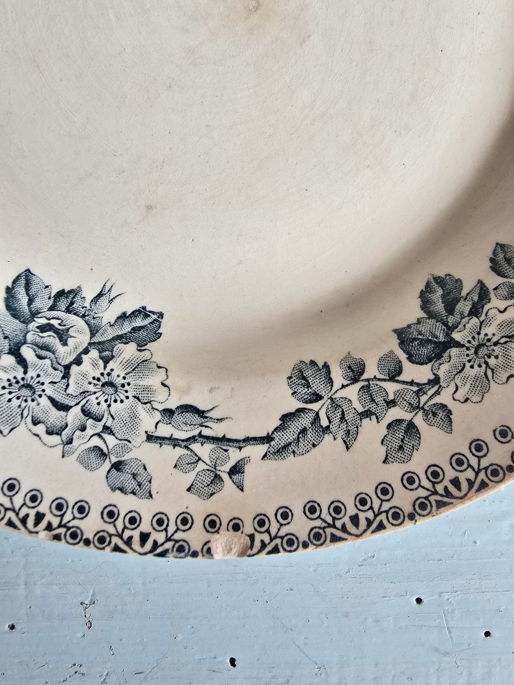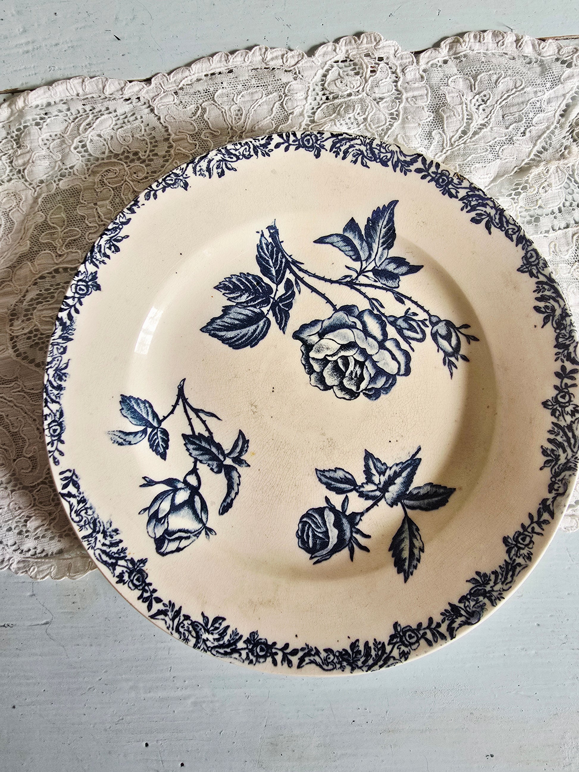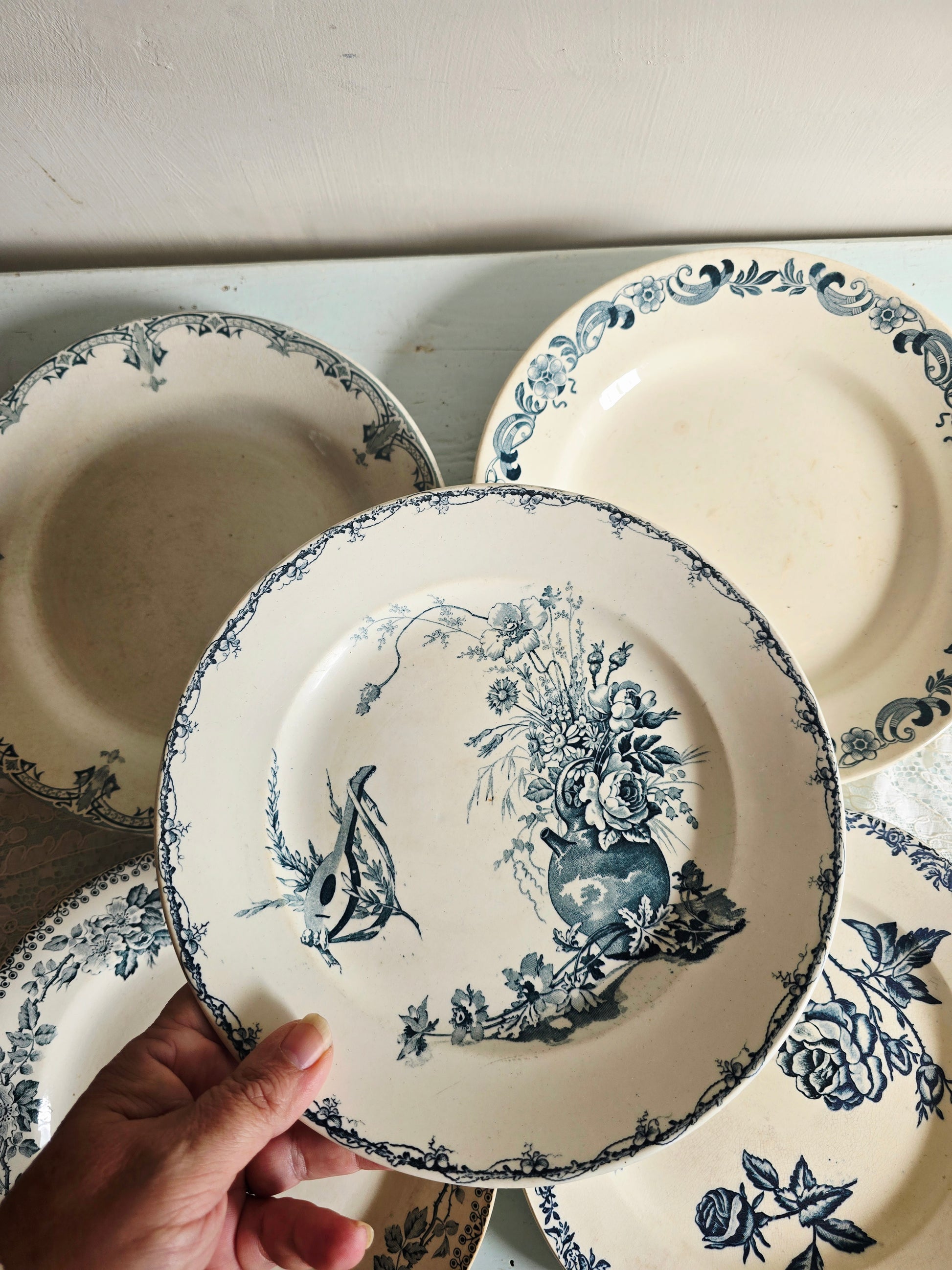 Ces assiettes sont anciennes et présentent des traces de leur vécu : taches, craquelage, 1 assiette a un petit éclat