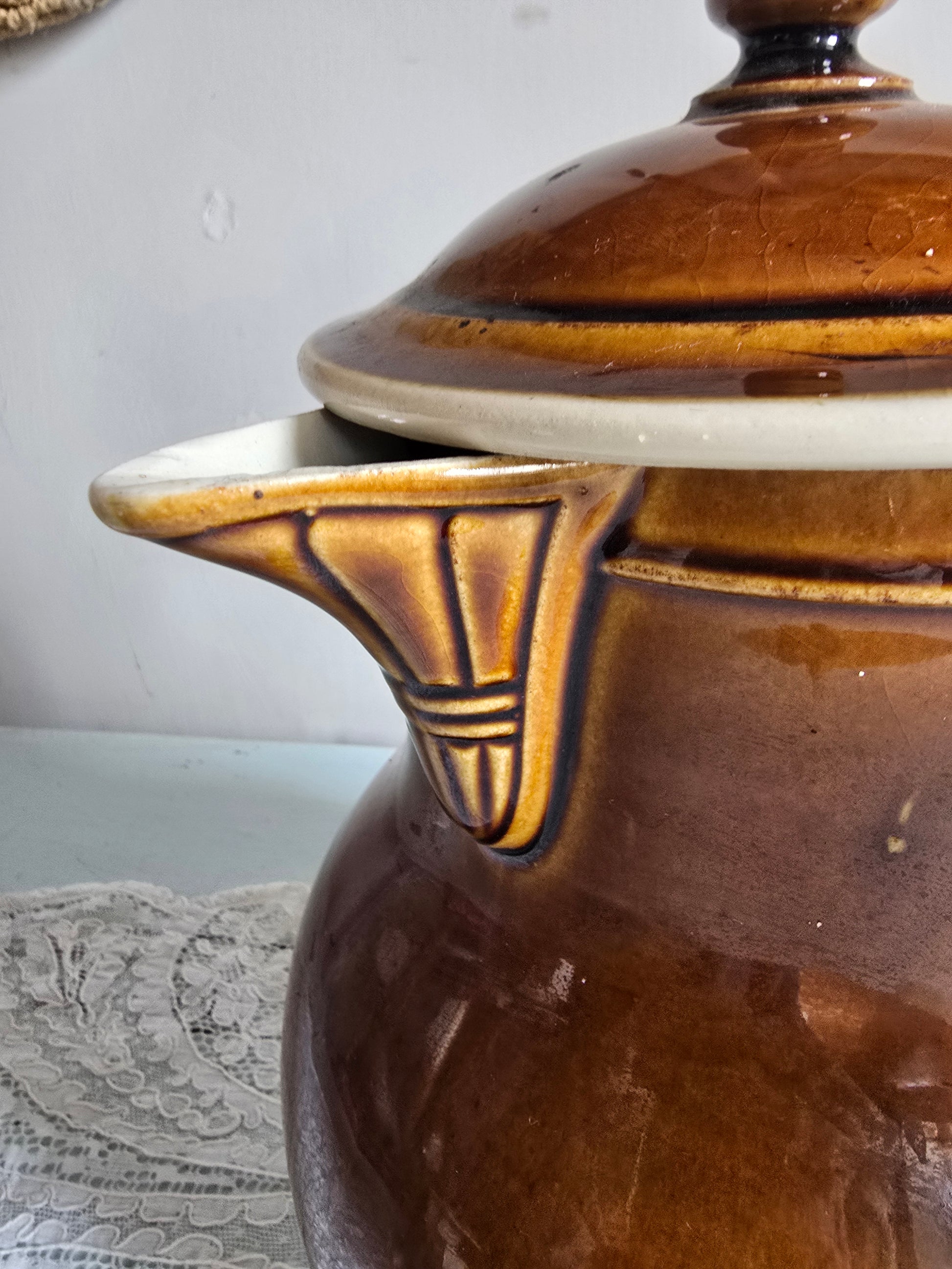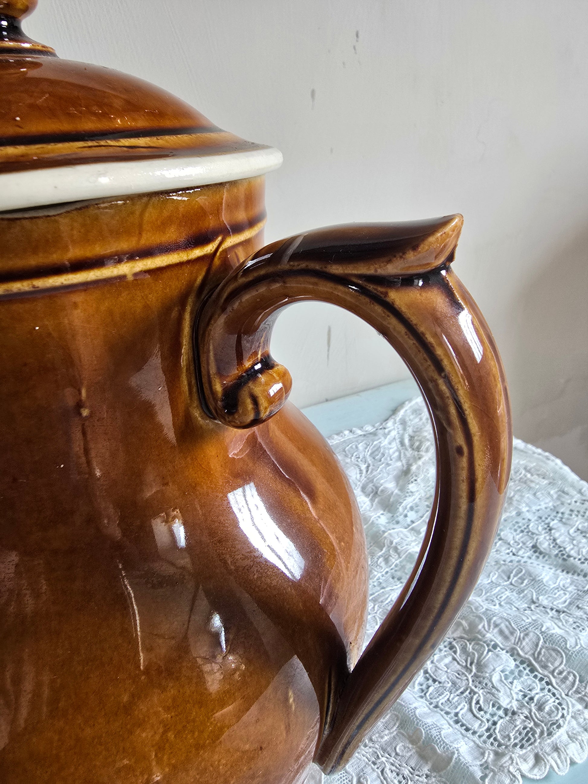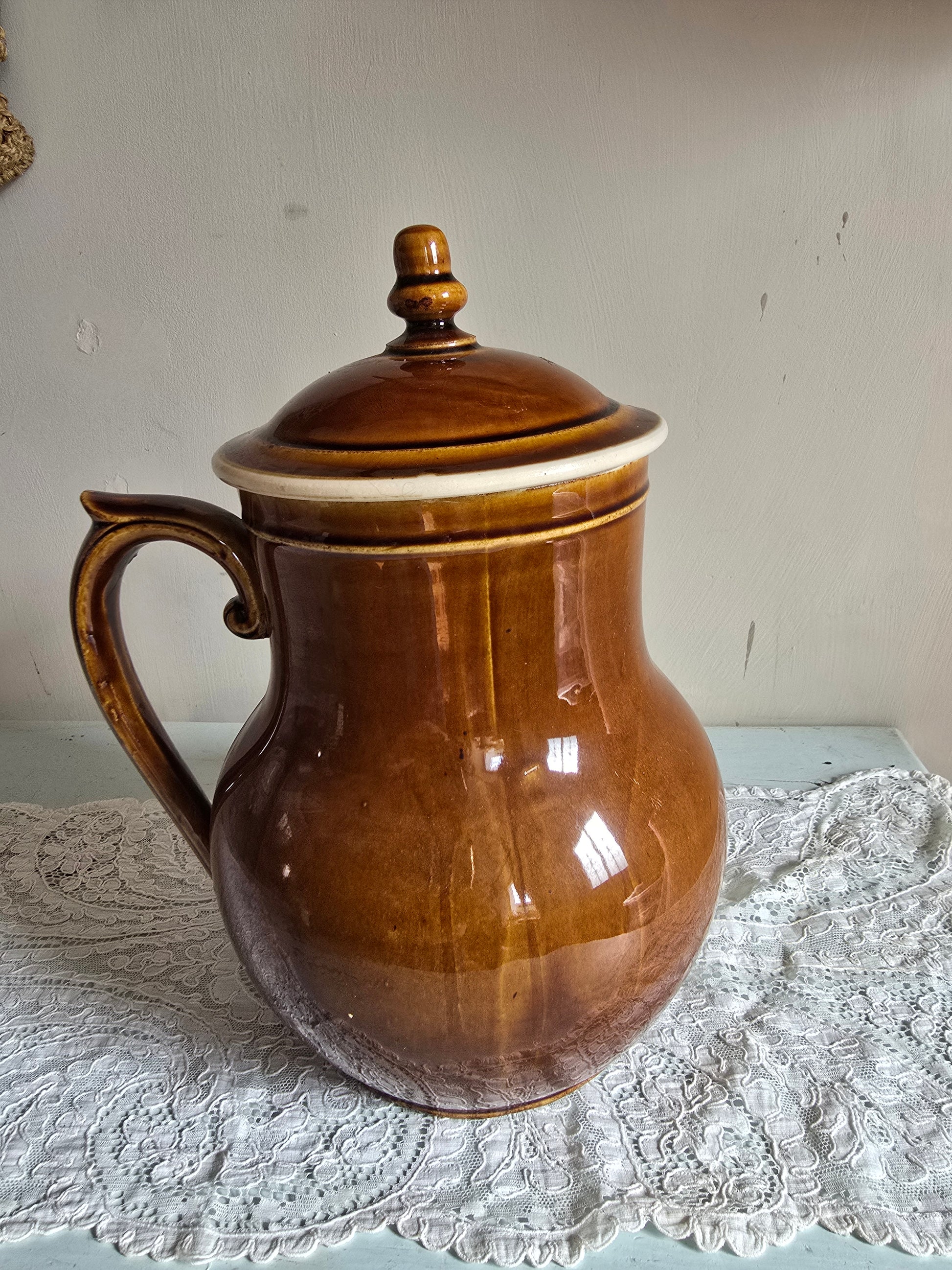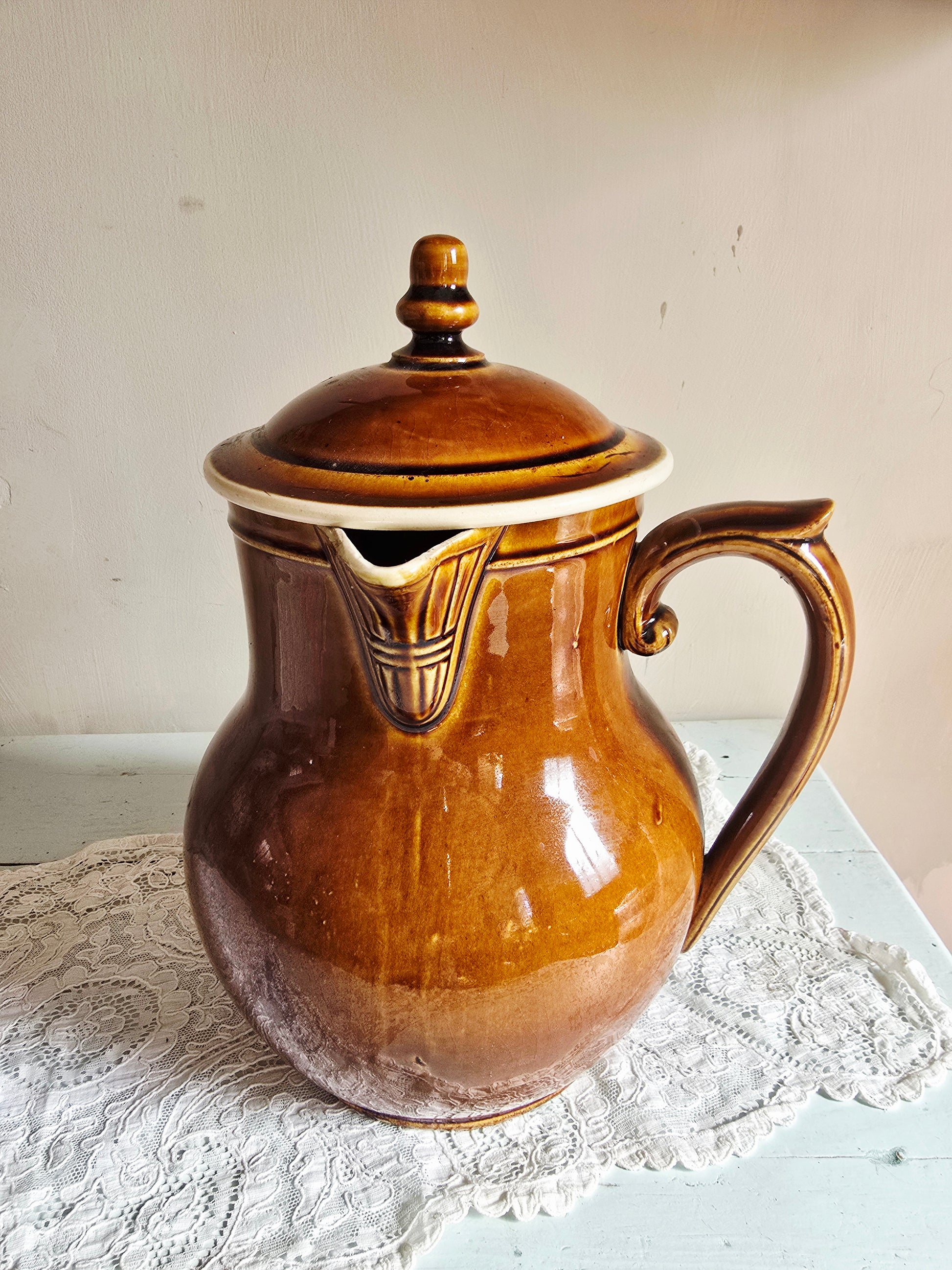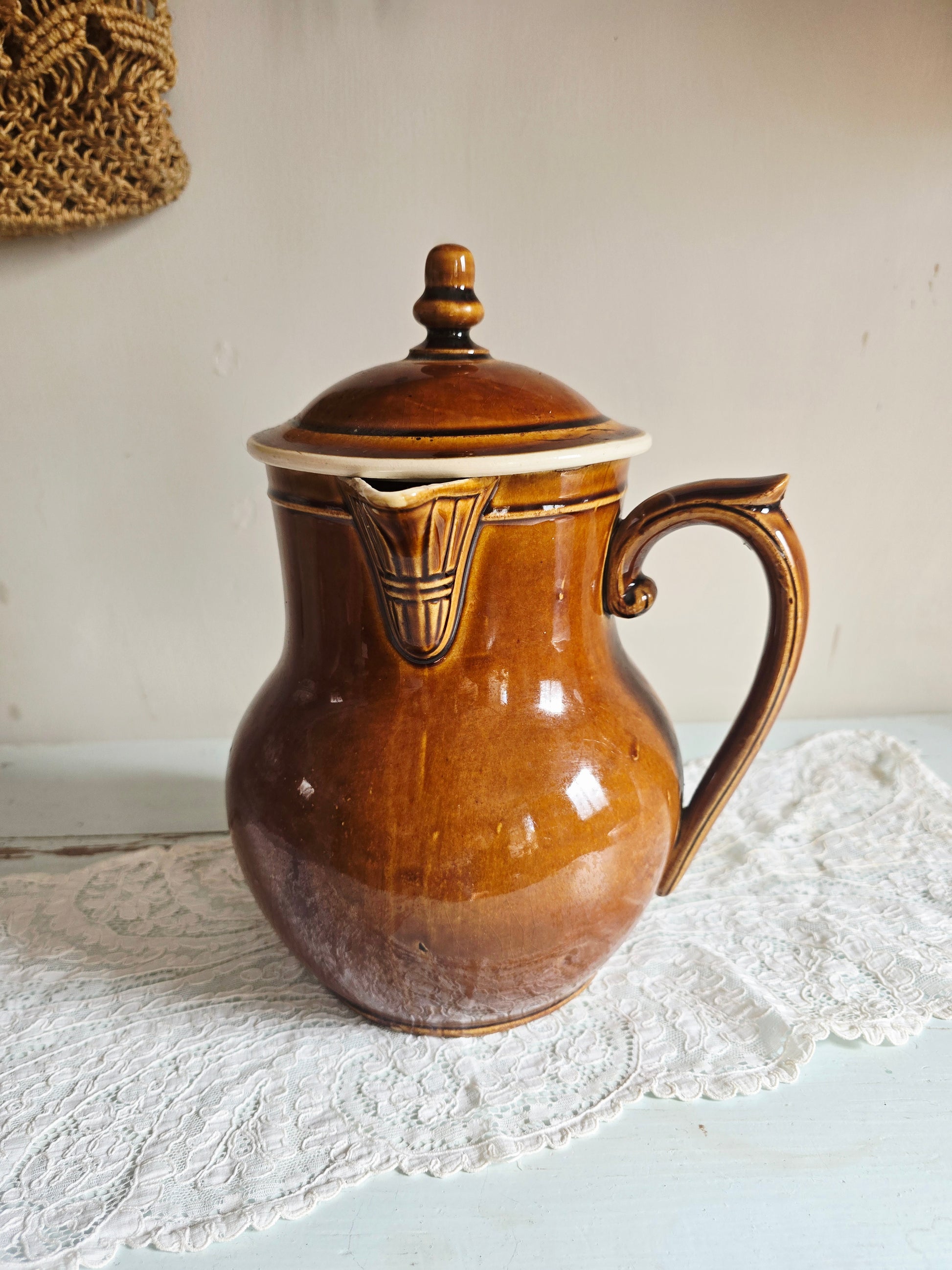 Beau pichet en grès marron datant des années 50-60. Il fut utilisé pour verser du chocolat chaud.