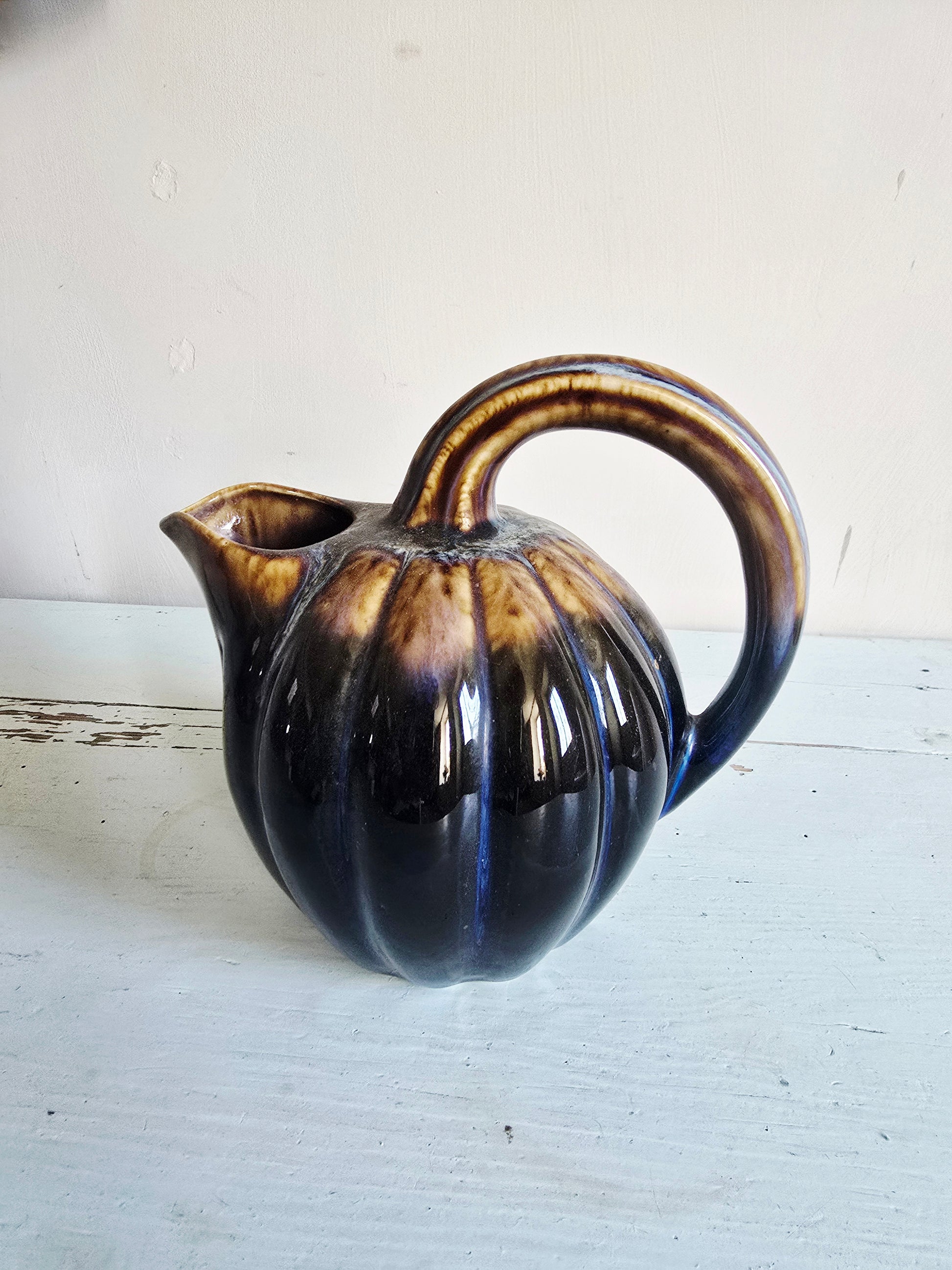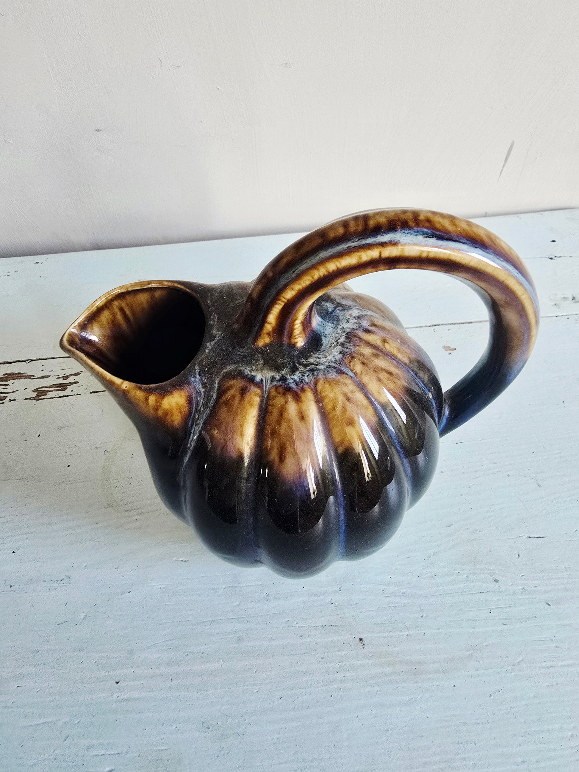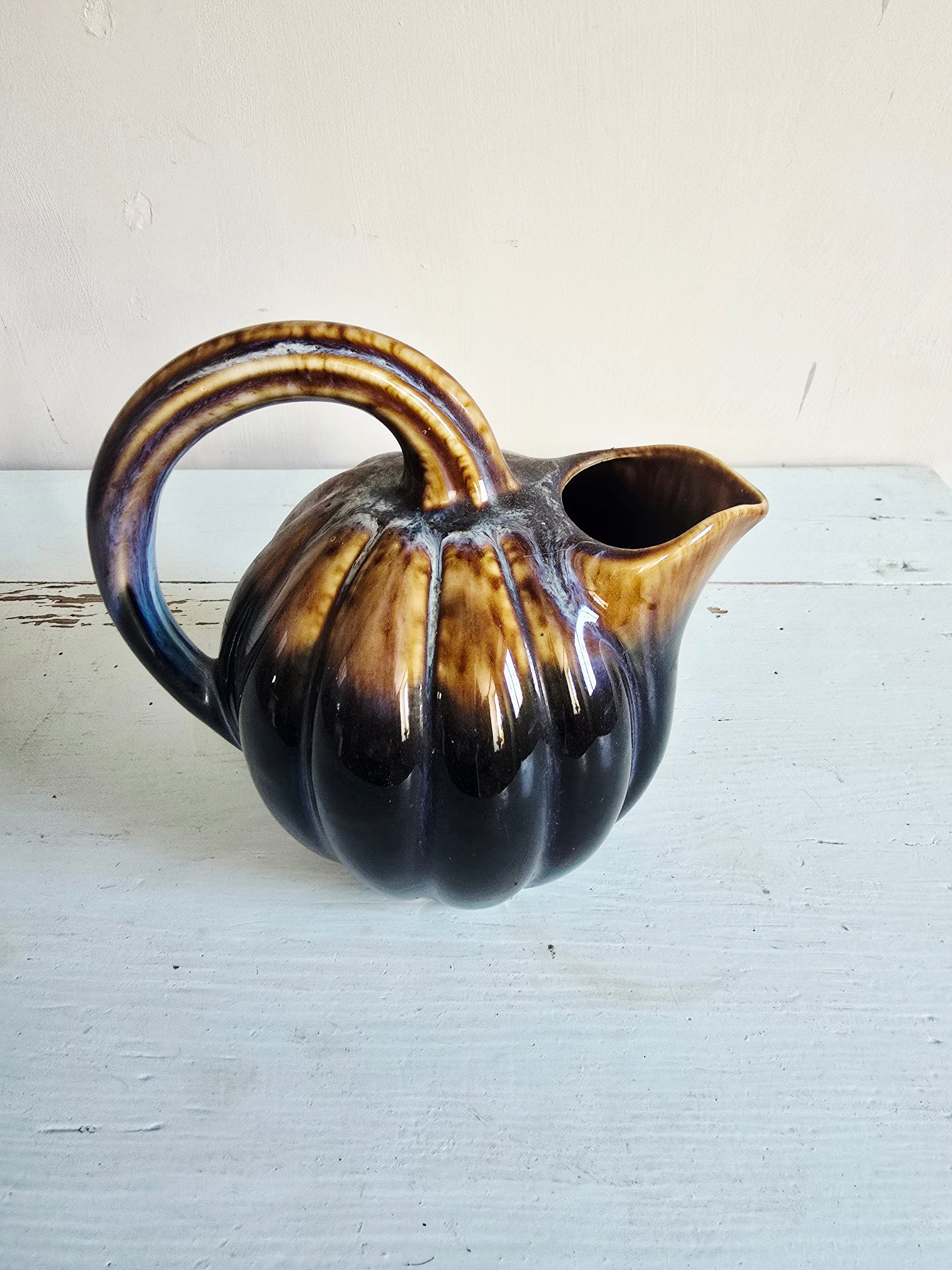 Ideal pour vos décos d'automne : Beau pichet vintage en forme de citrouille ou potiron flammé.